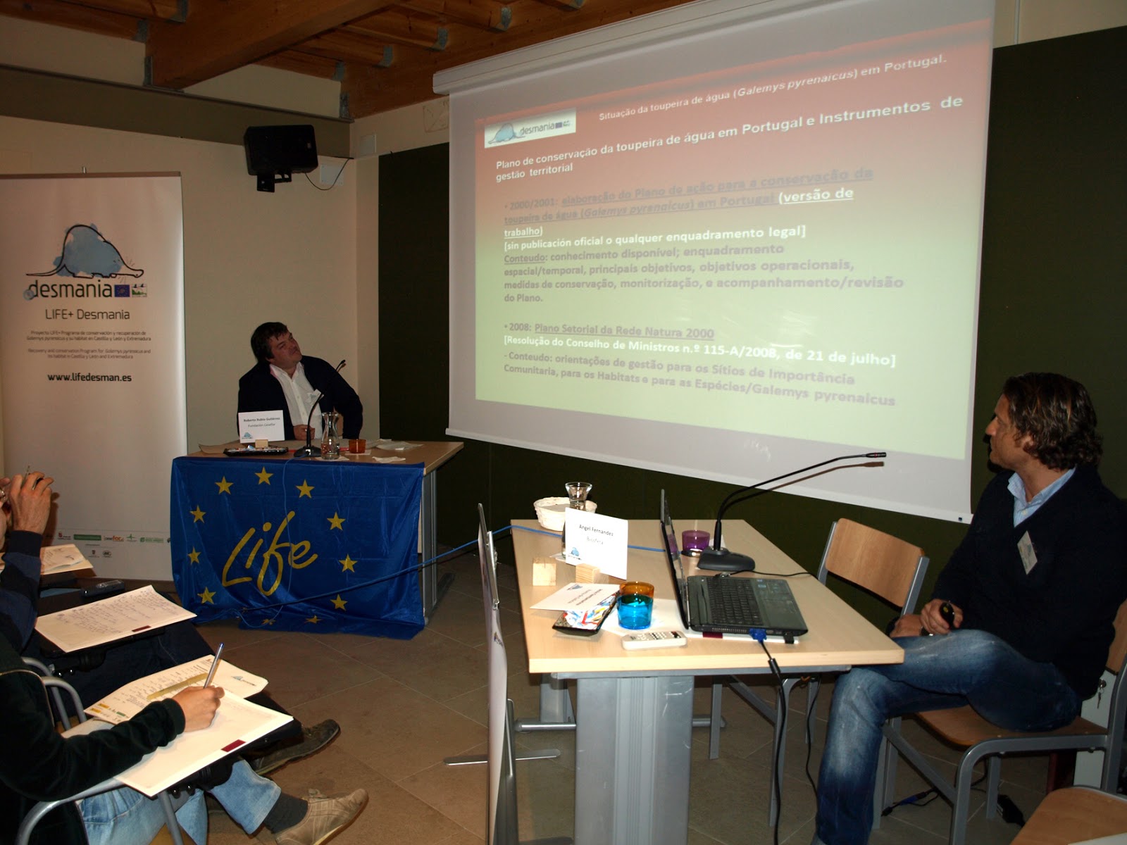 Ángel Fernández González, Director Técnico de BIOSFERA, realizando una de sus ponencias técnicas sobre la situación del Desmán en Portugal