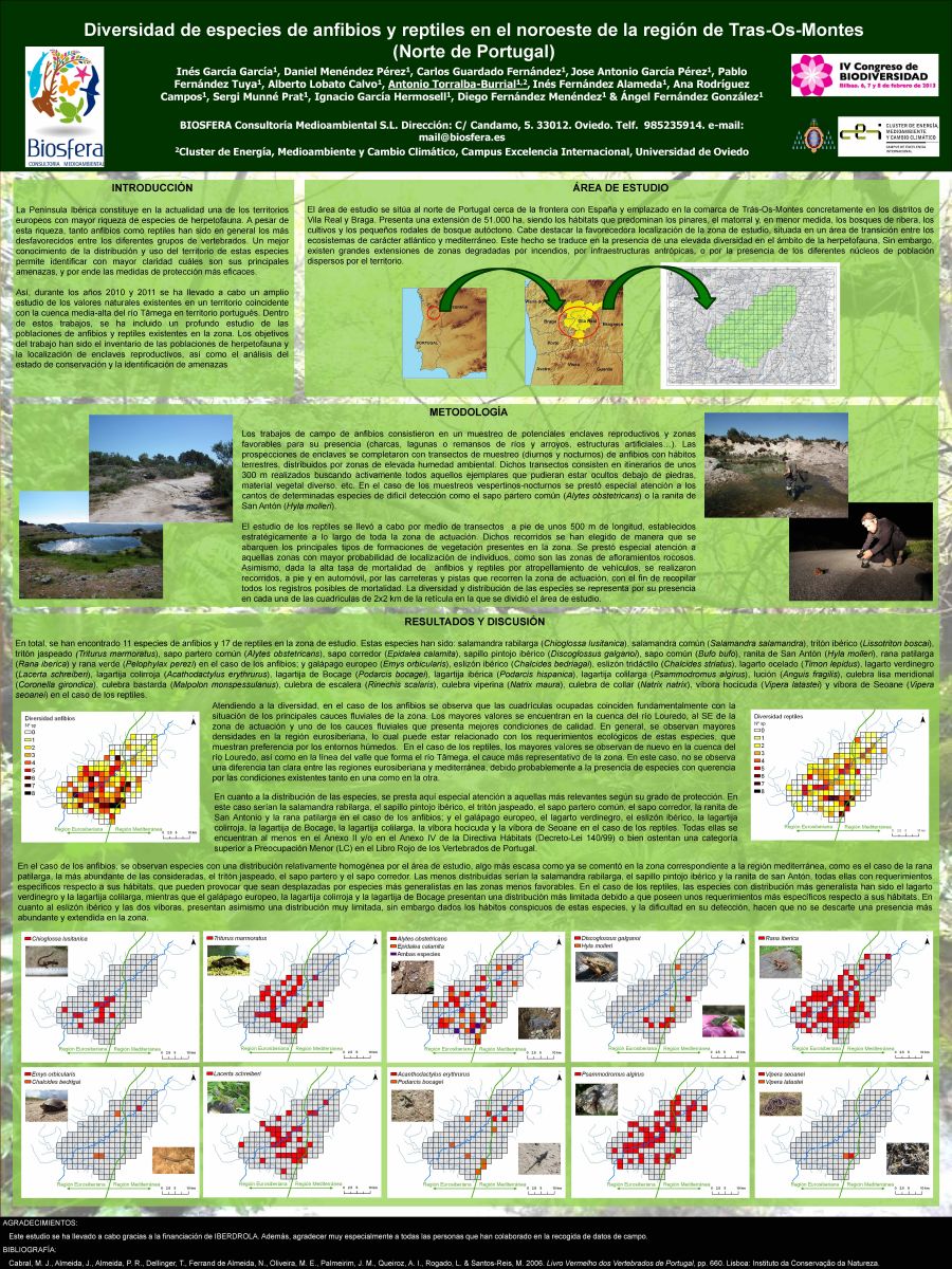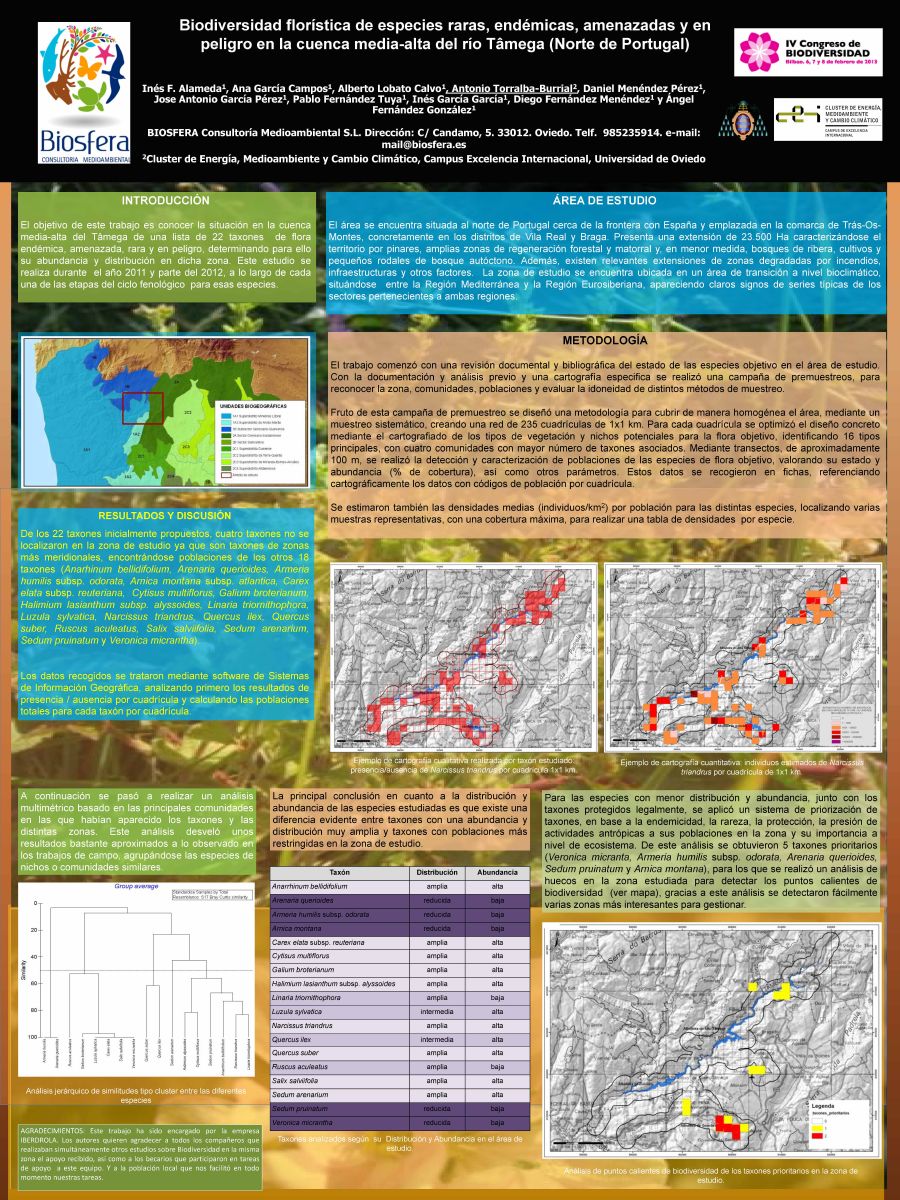 Entre los trabajos presentados, se encuentra el estudio de la biodiversidad florística de especies raras, endémicas, amenazadas y en peligro llevado a cabo en la cuenca media-alta del río Tâmega, al noreste de Portugal. En este estudio adicionalmente se ha llevado a cabo un análisis con el fin de localizar «puntos calientes» de biodiversidad, ubicándose así varias zonas interesantes para gestionar.